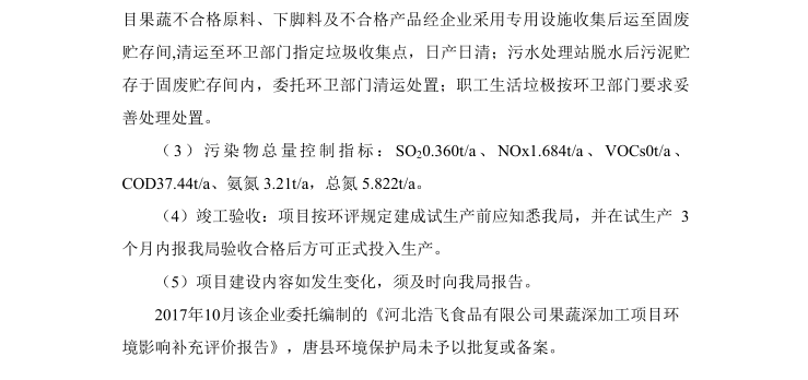 下一篇:河北浩飛食品有限公司果蔬深加工項目 竣工環(huán)境保護驗收意見